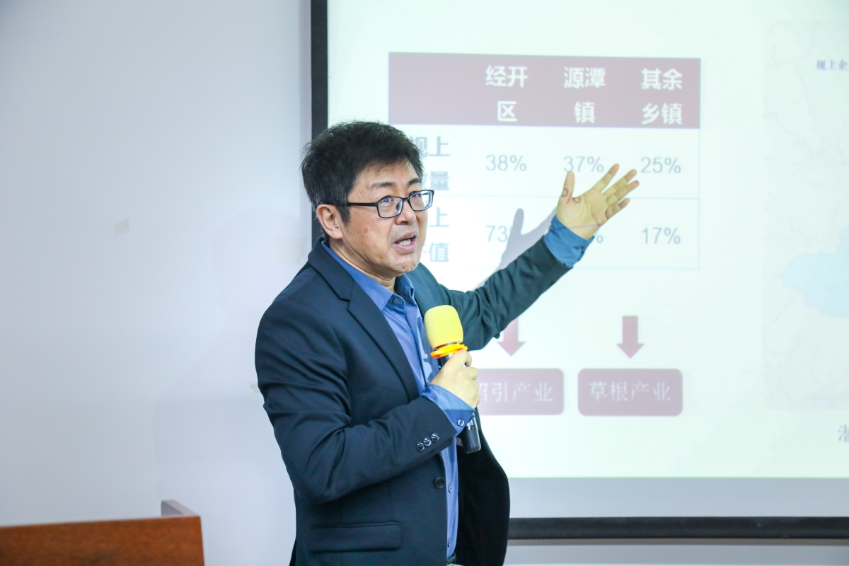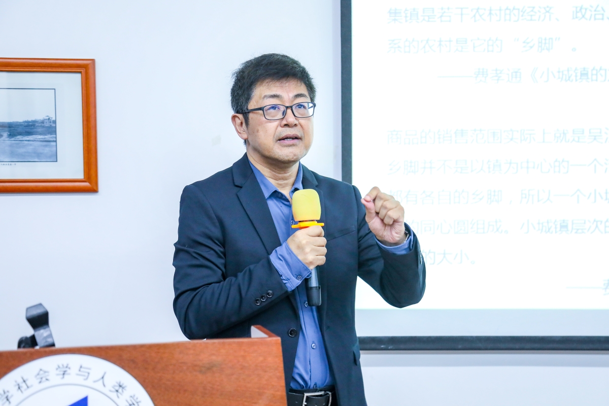 周飞舟教授以“宜居”和“宜业”为关键词,指出城乡融合发展主要讨论的是城市和乡村交界处所发生的生活和生产变化,从而引出“社会学视野下的县域产业发展”的演讲主题。周飞舟教授采用自下而上的视角对县、乡、村的生产方式进行了分析,指出城镇是将很多小农生产方式链接在一起的“节点”,县城是“乡脚”体系中的“龙头”。接着围绕县域产业的二元结构、空间分布、面临的劳动力问题及草根工业的“乡缘”等展开具体讨论,指出县域的“草根产业”构成了中国产业的底盘,底层运作逻辑与中国特有的关系主义密切相关。