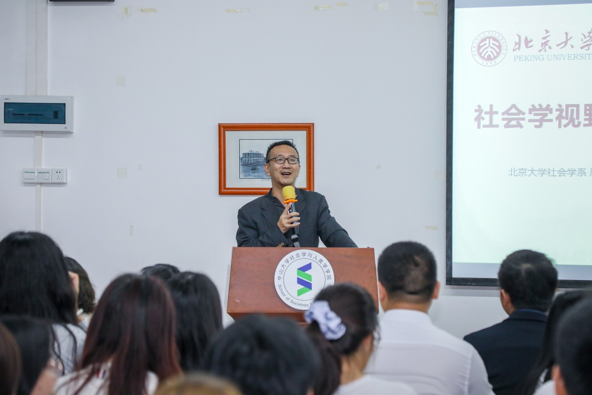 讲座由北京大学社会学系系主任周飞舟教授主讲,我院副院长、社会学与社会工作系系主任梁玉成教授主持。现场座无虚席,一百多位师生聆听了本场讲座。