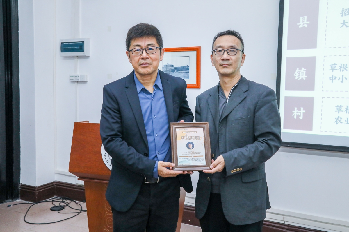 师生互动交流结束后,梁玉成副院长代表学院赠送本次讲座的纪念海报。本场纪念讲座在热烈的掌声中圆满结束。