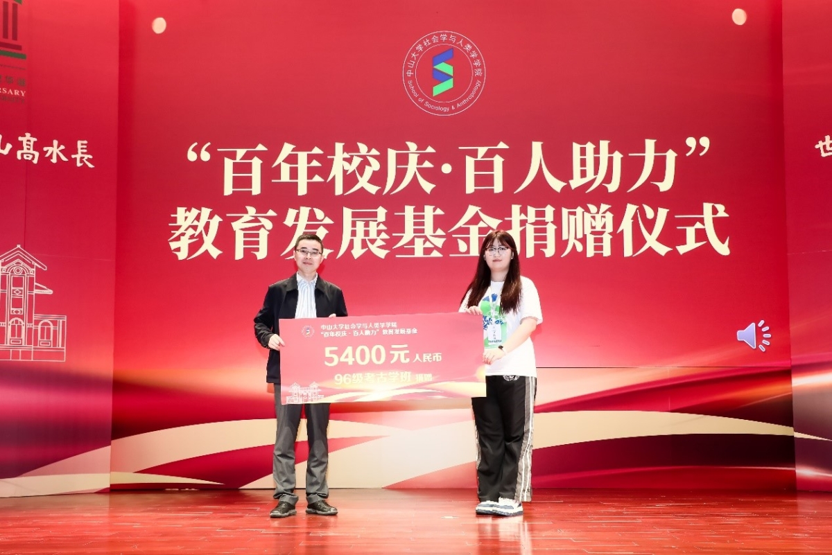 作为“百人助力”活动的重要组成部分,学院成立“百年校庆·百人助力”教育发展基金,齐聚校友各界力量,共助学校学院发展。大会举行了“百年校庆·百人助力”教育发展基金(第一期)捐赠仪式,共有6位校友个人和 8个集体进行了捐赠。各位校友对于学院教育事业的慷慨捐赠,将帮助中大精神在接下里的发展中薪火相传、生生不息,也将进一步筑牢学院学科建设根基、繁荣学院各项建设事业,同时也将成为学弟学妹砥砺进取的榜样力量。接下来,学院还将会根据后续校庆活动安排,举办相关的捐赠仪式。