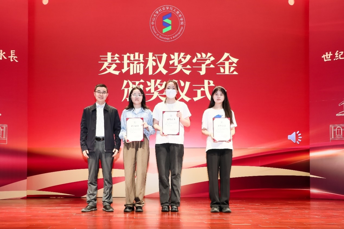 现场还进行了麦瑞权捐赠奖学金颁奖仪式。颁奖仪式上,获奖同学魏斯佳对师兄师姐表达了感谢和敬意,并表示自己将会继续在学术的高山上努力攀登,不辜负大家的期望。