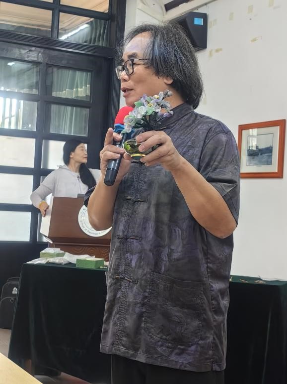 本次活动邀请了江门市非遗玉石花盆景传承人周平辉老师进行授课,我院分工会主席李宁利老师主持活动。李宁利老师在活动上表示,在百年校庆来临之际,我院结合本院专业特色,以迎百年,庆华诞为主题,为我院及全校教职工带来不一样的非遗活动体验,希望借此促进教职工以及各院系之间的交流。